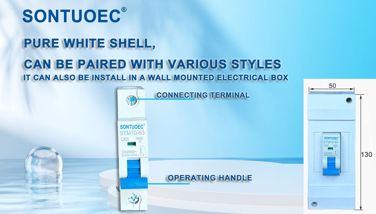 SONTUOEC သည် အမျိုးမျိုးသော အသေးစားလျှပ်စစ်ပစ္စည်းများ STM10-63 Series high breaking miniature circuit breaker ၏ အင်္ဂါရပ်များ ပါ၀င်ပြီး၊ စွမ်းဆောင်ရည် စိတ်ချရသော၊ ဖောက်ထွင်းနိုင်မှု မြင့်မားသော၊ အသွင်အပြင် ပြေပြစ်ပြီး ၎င်း၏ အခွံနှင့် အစိတ်အပိုင်းများကို ထိခိုက်မှု ခံနိုင်ရည်ရှိသော၊ ခိုင်ခံ့သော မီးမလောင်နိုင်သော အင်္ဂါရပ်များဖြင့် ပြုလုပ်ထားသည်။ 50 သို့မဟုတ် 60 ကြိမ်နှုန်း၊ Ue 400V နှင့်အောက်၊ Ui 63A နှင့်အောက်ရှိပါဝါစနစ်အတွက်သင့်လျော်သည်။ ရုံးခန်း အဆောက်အဦ၊ နေထိုင်ရာ၊ အလင်းရောင်၊ ဓာတ်အားဖြန့်ဖြူးမှုနှင့် ဝန်ပိုလွန်ကဲမှုနှင့် စက်ပစ္စည်းများ၏ ဝါယာရှော့ကာကွယ်ရေးအတွက် အဓိကအသုံးပြုသည်။ သာမာန်အားဖြင့်၊ မကြာခဏမဟုတ်သော ဓာတ်အားလွှဲပြောင်းမှုစနစ်အဖြစ်လည်း အသုံးပြုနိုင်သည်။ ၎င်းသည် IEC60898.1 နှင့် GB10963.1 စံနှုန်းများနှင့် ကိုက်ညီသည်။